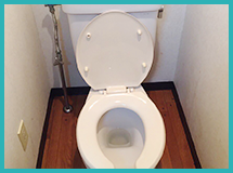 トイレの清掃はお任せください!尿石、アンモニア臭、便器の黒ずみ、トイレのいやーなニオイ、クロス壁紙、トイレの床、クッションフロアに吸着した汚れなど材質に合わせてクリーニングの対応しています。
