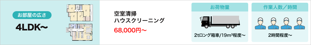 ※ お部屋の片付け、荷物量などは間取り、車両のサイズを目安にしてください。