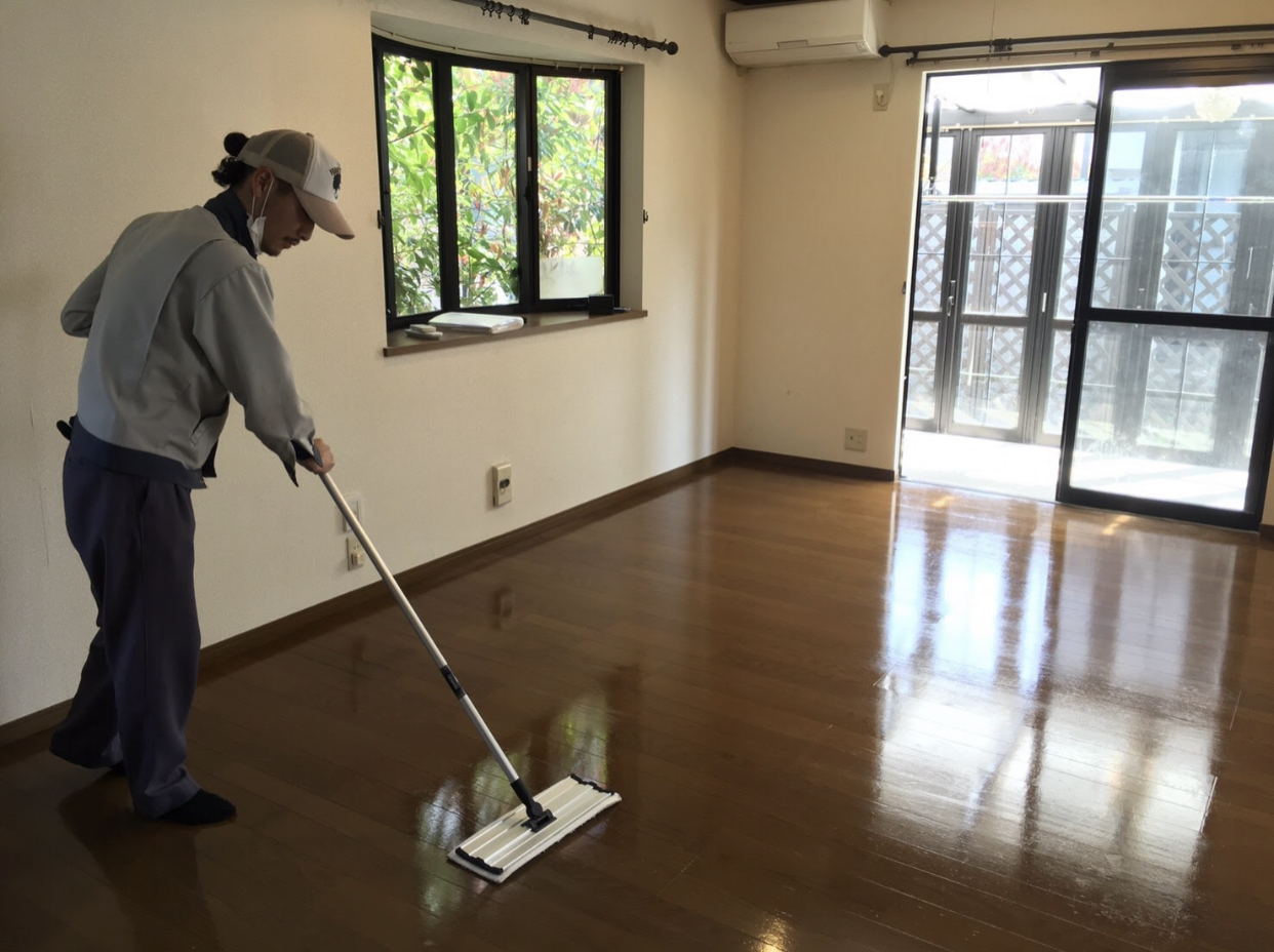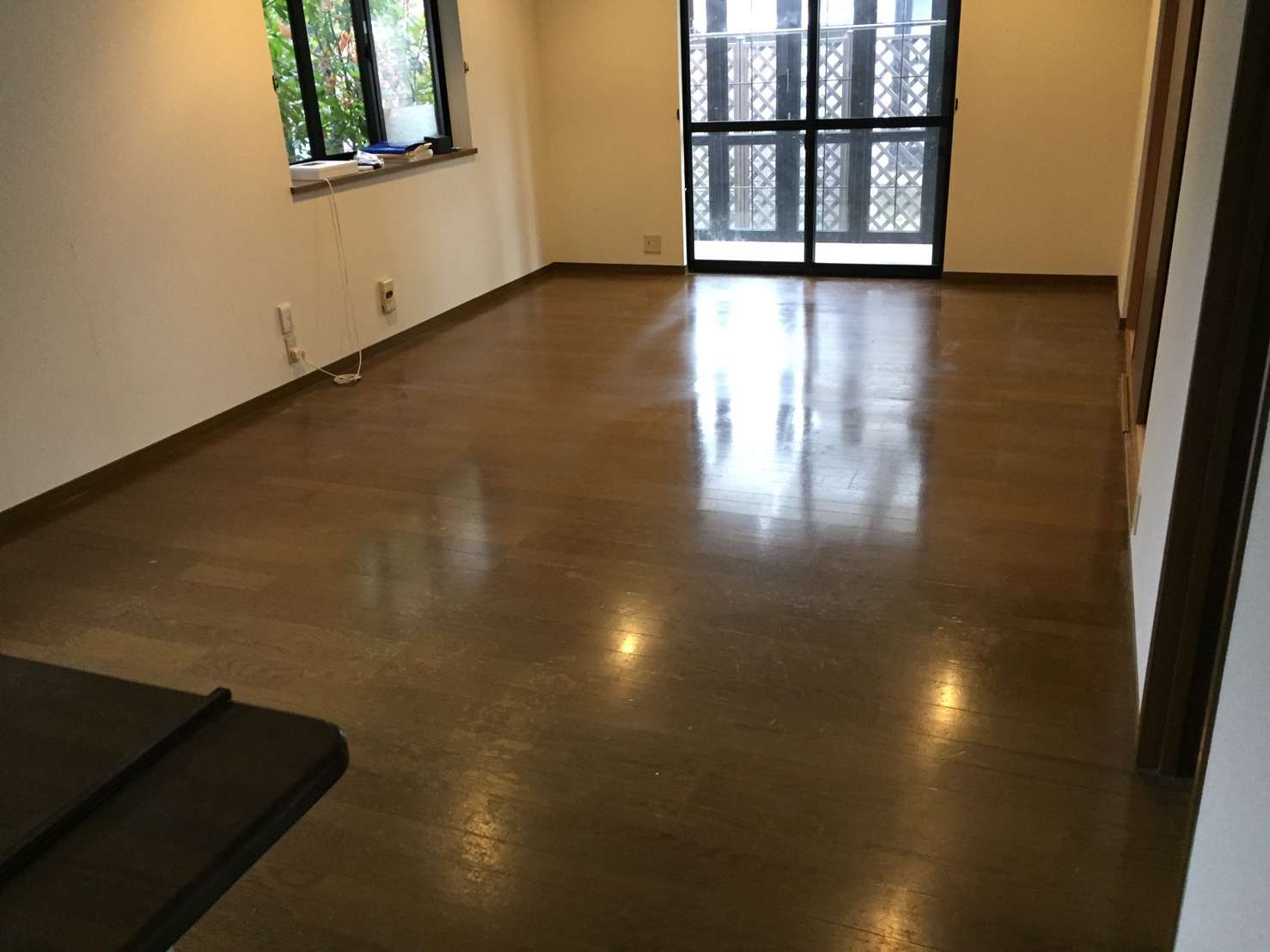 床の清掃をキレイにします。材質にあわせた床のワックスがけをします。