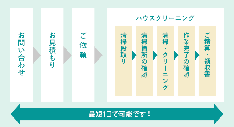 空室清掃では、「引越しで急でいる」「室内点検」の立ち会いまで綺麗にお部屋の清掃をしないといけないなどの理由で、お困りの方も多いと思います。